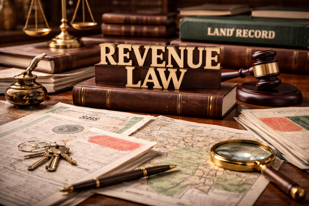 Revenue law deals with matters related to land ownership, records, and disputes handled by revenue authorities. These cases often involve Tehsil, Patwari, Revenue Courts, and related departments.